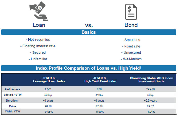These loans are issued by, distributed by, traded by, invested in by and rated by the same entities involved in traditional fixed income. However, there are two key differences: